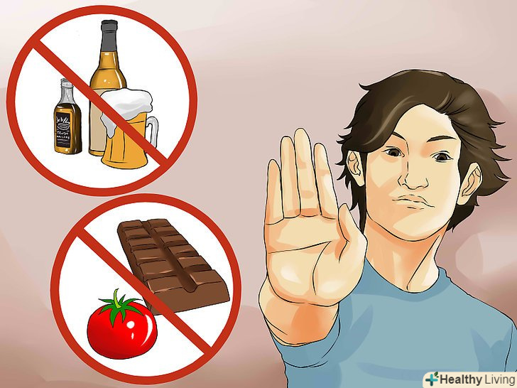 Уникайте поширених тригерів (провокуючих чинників).ГЕРХ можуть спровокувати певні продукти і напої. Хоча вони можуть відрізнятися для різних людей, найчастіше це такі продукти:[18]- Помідори;