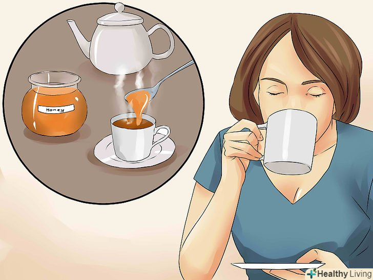 Пийте гарячий чай з медом.гарячі напої допомагають заспокоїти хворе і роздратоване горло і позбутися від постійного кашлю. Мед є натуральним засобом від кашлю.[1] і дійсно, дослідження показали, що мед настільки ж ефективно допомагає полегшити нічний кашель, як і препарати від кашлю, до складу яких входить декстрометорфан.[2]- Гарячі рідини допомагають розрідити слиз в горлі. Пийте трав'яні чаї з перцевої м'яти і евкаліпта, щоб розрідити слиз і полегшити кашель.