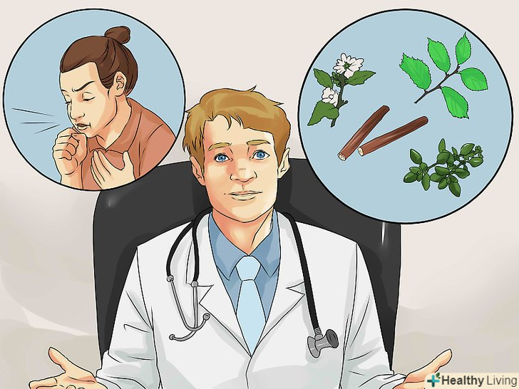 Дізнайтеся у лікаря про рослинні засоби.для лікування кашлю традиційно використовують різні рослинні засоби. Однак вони можуть впливати на інші проблеми зі здоров'ям і взаємодіяти з лікарськими препаратами, тому необхідно проконсультуватися з лікарем або фармацевтом щодо того, які засоби безпечні для вас. Більшість таких рослинних засобів можна придбати в аптеках. Подумайте про те, щоб використовувати такі засоби:- Алтей лікарський. Ця лікарська рослина містить бассорін (так звану рослинну слиз), який допомагає зняти роздратування горла. Алтей продається у вигляді чаю, настоянки і капсул.