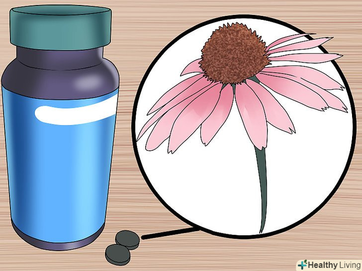 Спробуйте використовувати інші рослинні і натуральні засоби.хоча користь таких натуральних засобів, як ехінацея, женьшень і селен, неясна, їх варто приймати в помірних кількостях. Особливо слід дотримуватися рекомендовану дозування в разі селену, так як у великих дозах він шкідливий для здоров'я.[11][12]- Згідно з деякими дослідженнями, прийом 300 міліграмів ехінацеї три рази на день допомагає запобігти застуді. Однак якщо ви вагітні, годуєте грудьми, відчуваєте алергію на амброзію або страждаєте аутоімунним захворюванням, слід попередньо проконсультуватися з лікарем.