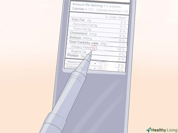 Знайдіть кількість харчових волокон в їжі. харчові волокна зазвичай знаходиться в підзаголовку під загальною кількістю вуглеводів.