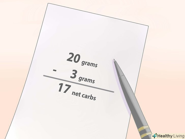 Відніміть кількість харчових волокон із загальної кількості вуглеводів. Якщо в продукті міститься 20 грамів загальних вуглеводів і 3 грами харчових волокон, то продукт містить 17 грамів чистих вуглеводів.