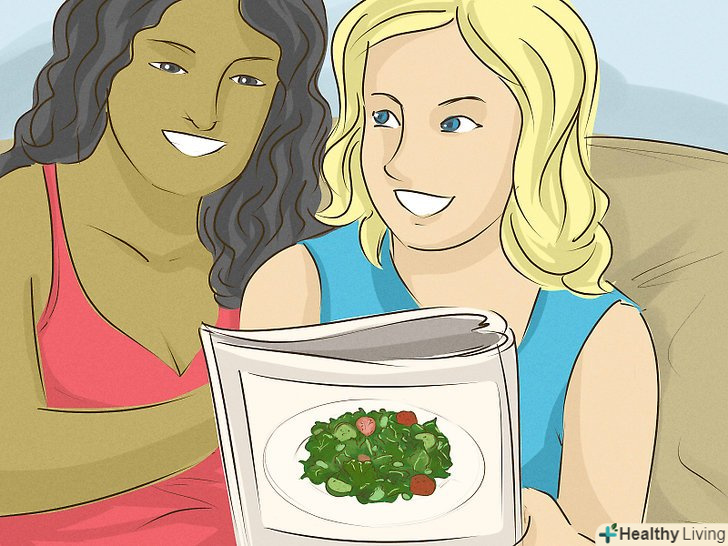Заручіться підтримкою. коли мова йде про спробу змінити спосіб життя, корисно буде знайти собі друга, члена сім'ї або інше джерело моральної підтримки. Багато людей домагаються помітно великих успіхів в тому випадку, коли їх хтось підтримує на шляху змін. [4]- Поговоріть з друзями, родичами або колегами про свої плани щодо поліпшення харчування. Запитайте у них, Чи не хотів би хто-небудь до вас приєднатися. Разом ви могли б виробити різні ідеї здорового харчування, обговорити рецепти приготування страв і способи подолання труднощів.