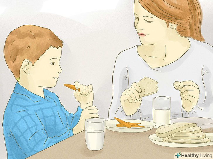 Прищеплюйте звички правильного харчування своїм дітям. якщо ви намагаєтеся розвинути в собі звички правильного харчування, можливо, ви також захочете прищепити їх і іншим членам сім'ї.- Дітей досить складно привчати до правильного харчування. Проте вони швидко вчаться і імітують ту поведінку, яку демонструють батьки. [16]
