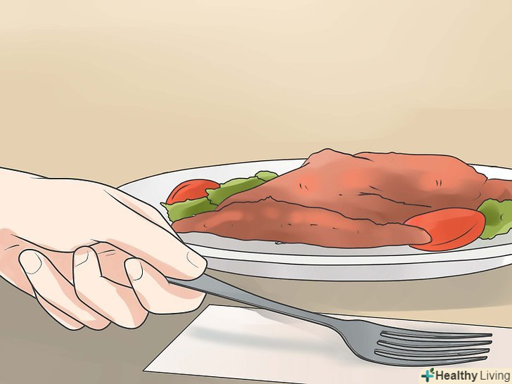 Випийте склянку води або / і маленьку порцію легкого супу перед вашим основним блюдом.пийте воду під час їжі. Це допоможе вам досягти відчуття ситості.- Майте на увазі, що не всі рекомендують пити воду під час їжі, так як деякі люди вірять, що це може розбавити корисні речовини, які містяться у вашій їжі. Однак цю теорію не підтверджують інші фахівці в області харчування, які вважають, що вода навпаки сприяє травленню.[2] іншими словами, прислухайтеся до реакцій вашого організму, вживаючи воду під час їжі.