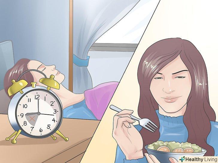 Не їжте принаймні за дві години до сну. коли ви лягаєте в ліжко на ніч, здатність вашого організму переробляти їжу сповільнюється. Коли ви їсте прямо перед сном, жир може накопичуватися у вашому тілі замість того, щоб спалюватися метаболізмом. Зачекайте дві години після їжі, перш ніж лягти спати.- Крім того ви можете отримати печію, якщо лягаєте спати відразу після їжі.