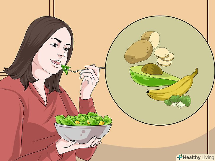 Споживайте більше калію. калій допомагає нейтралізувати кислоти, які виводять кальцій з організму, тому необхідно отримувати це поживна речовина поряд з кальцієм, білками і вітамінами. Дорослі повинні отримувати в загальному 4,7 грама калію в день. [9] продукти, багаті калієм: [10]- Солодка картопля