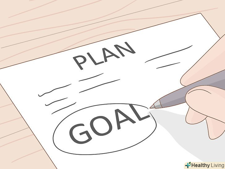 Ставте перед собою цілі. якщо ви хочете чогось досягти, то корисно було б поставити перед собою цілі. Просто переконайтеся, що вони досяжні. Ви підтримаєте свою мотивацію і зосередженість на великій картині, якщо будете винагороджувати себе за невеликі досягнення на своєму шляху. [21]