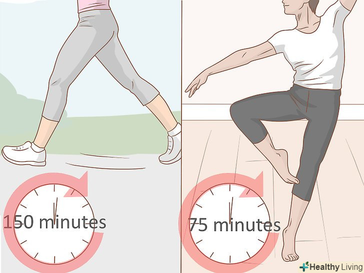 Займайтеся фізичними вправами. регулярна фізичне навантаження – найважливіша складова здорового способу життя. Постарайтеся включити хоча б 150 хвилин помірного аеробного навантаження (наприклад, швидка ходьба) або 75 хвилин інтенсивного аеробного навантаження в свій тижневий розклад. Щоб тримати м'язи в тонусі, потрібно також періодично займатися силовими тренуваннями. [3]- На додаток до поліпшення фізичного здоров'я регулярні вправи також допомагають послабити симптоми депресії. [4]