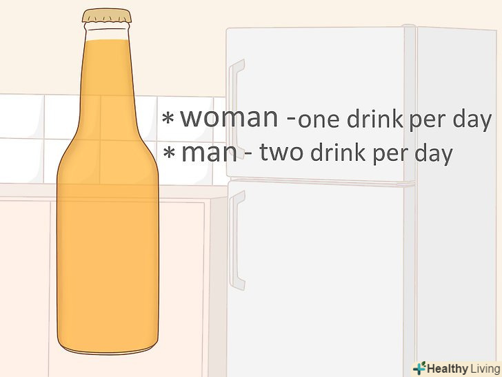 Скоротіть споживання алкоголю. Алкоголь хороший в міру, але занадто велика його кількість може стати причиною серйозних проблем зі здоров'ям, наприклад, підвищеного кров'яного тиску, підвищеного рівня холестерину, інсультів і серцевої недостатності. Вживайте не більше одного келиха в день, якщо ви жінка, і не більше двох, якщо ви чоловік. [8]
