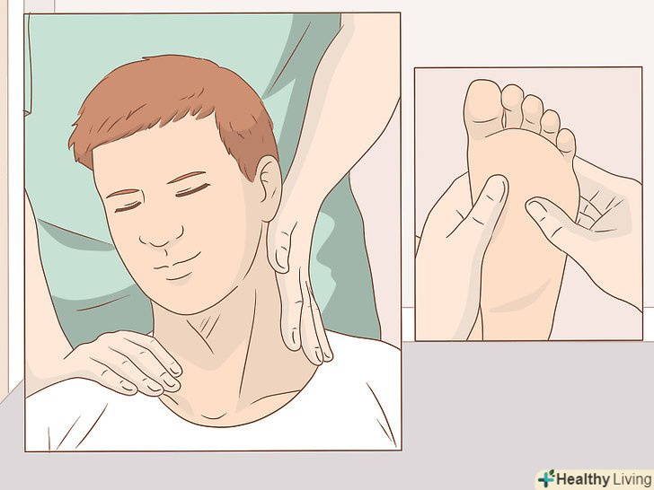 Сходіть на масаж. допоможіть собі розслабитися і позбутися від болю в м'язах, час від часу балуючи себе масажем. М'язи шиї, як правило, стають особливо затиснутими! [14]- М'який тиск на зону третього ока і на точки впливу на ступнях також можуть творити чудеса із загальним станом вашого здоров'я.