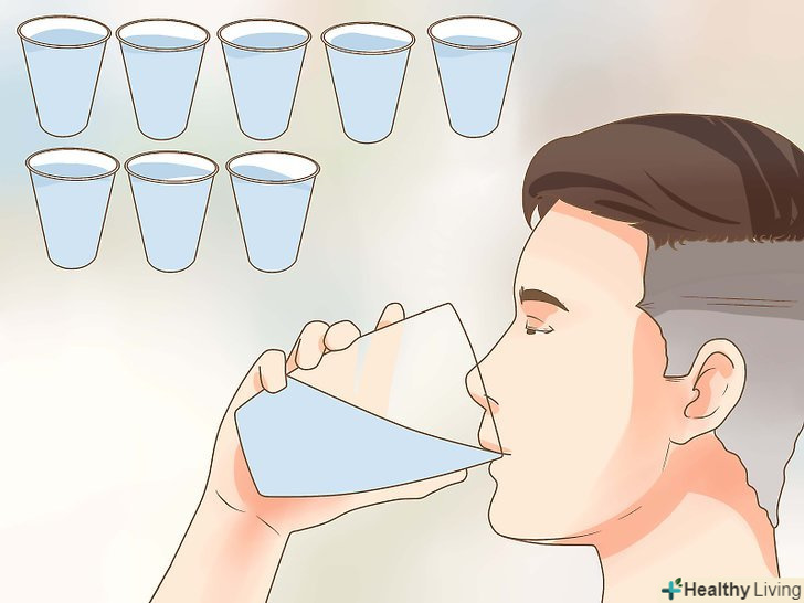 Пийте достатню кількість рідини.люди досить часто плутають спрагу з почуттям голоду. Пийте достатньо рідини протягом усього дня, і це допоможе вам утриматися від нічних перекусів.[5] крім цього, ставте біля свого ліжка склянку води. Якщо ви прокинетеся вночі з бажанням перекусити, випийте воду-це допоможе вам приглушити відчуття голоду.- Для підтримки водного балансу випивайте щогодини 225 мілілітрів рідини протягом усього дня. Можна пити просту воду, 100% фруктові соки, чай, кава та інші напої. Однак не вживайте напої з кофеїном хоча б за три години до того, як відправитися спати, щоб вони не порушили ваш сон.[6]