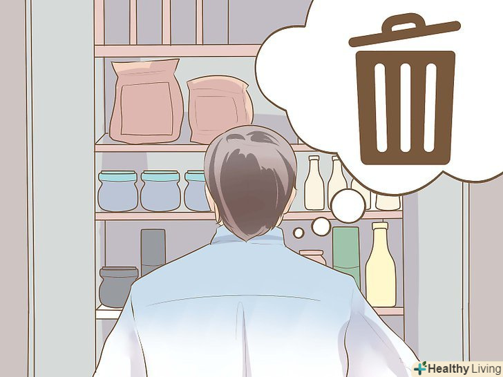 Позбавтеся від легких закусок або замініть їх більш корисними продуктами.як правило, люди перекушують ночами" зручними " і багатими вуглеводами продуктами.[7] щоб позбутися звички їсти ночами, повністю позбудьтеся від подібних продуктів або замініть їх більш корисною їжею.- Уважно огляньте свою кухню і позбудьтеся від продуктів, якими ви часто перекушуєте ночами. Перевірте кухонні шафи, холодильник та інші місця, в яких можуть опинитися продукти для перекусів. Позбавтеся від таких продуктів, як чіпси, печиво, кекси, морозиво і так далі. Викиньте їх або здайте в продовольчий БЛАГОДІЙНИЙ фонд.