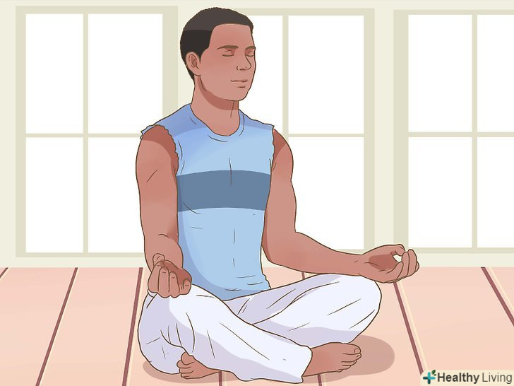 Спробуйте медитувати.якщо ви втомилися або відчуваєте стрес, то, можливо, ви вдаєтеся до нічних перекусів в спробах розслабитися і заспокоїтися. Медитація є прекрасним способом розслабитися, і з її допомогою можна уникнути небажаних нічних перекусів. Почніть з нетривалих медитацій і поступово збільшуйте їх тривалість.[11]- Сядьте прямо, закрийте очі і зробіть повільний вдих носом, порахувавши при цьому до чотирьох або п'яти. Ненадовго затримайте дихання, і на рахунок два повільно видихніть через ніс, також порахувавши до чотирьох або п'яти.