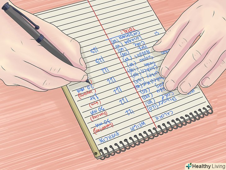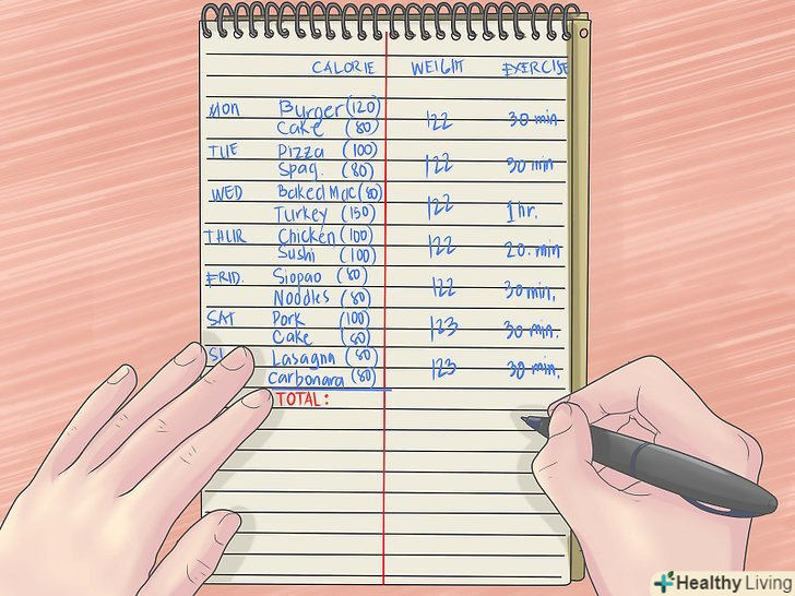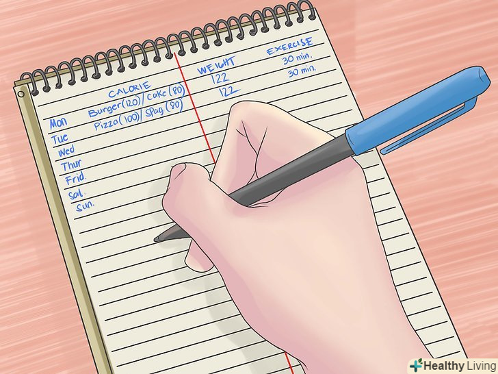 - Ви будете скидати вагу, якщо будете залишатися пильні. Записуйте навіть ті дні, коли ви повністю порушили свій раціон і з'їли навіть 5000 калорій в той день. Запишіть їх і запам'ятайте. Не закидайте свій щоденник тільки тому, що ви вжили більше потрібної кількості калорій / очок. Насправді, важливий елемент щоденника-виявити спускові гачки, які змушують вас порушити правила, і сповістити вас про необхідність змін.