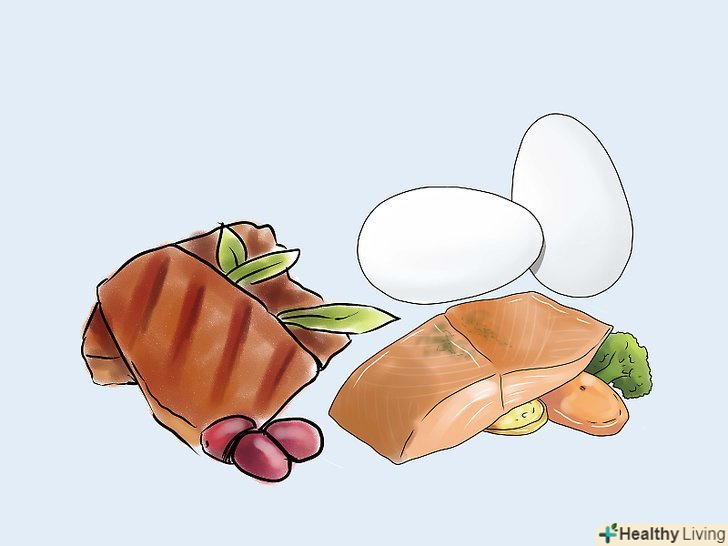 Зосередьтеся на жирах і Білку під час цього етапу.- Їжте курку, червоне м'ясо, рибу і яйця, включаючи яєчні жовтки, протягом цього етапу низьковуглеводної дієти. Прагніть, принаймні, до 113 грамів (4 унції) білка за кожен прийом їжі.