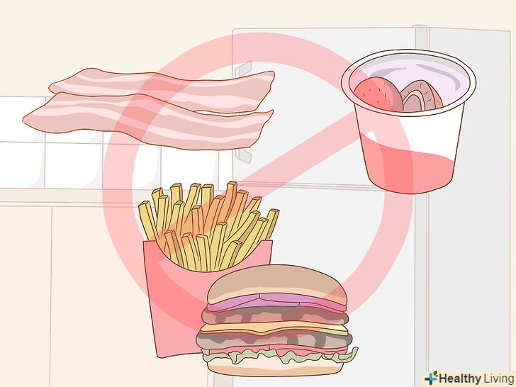 Відмовтеся від жирної і смаженої їжі.якщо ви схильні до панкреатиту, тоді вам варто відмовитися від усього, що містить насичені або транс-жири. Зокрема, якщо ви відновлюєтеся від нападу панкреатиту, жирна їжа може привести до повторного нападу.[4] намагайтеся уникати наступної їжі:[5]- Жирне м'ясо, на зразок субпродуктів, бекону, пепероні і салямі