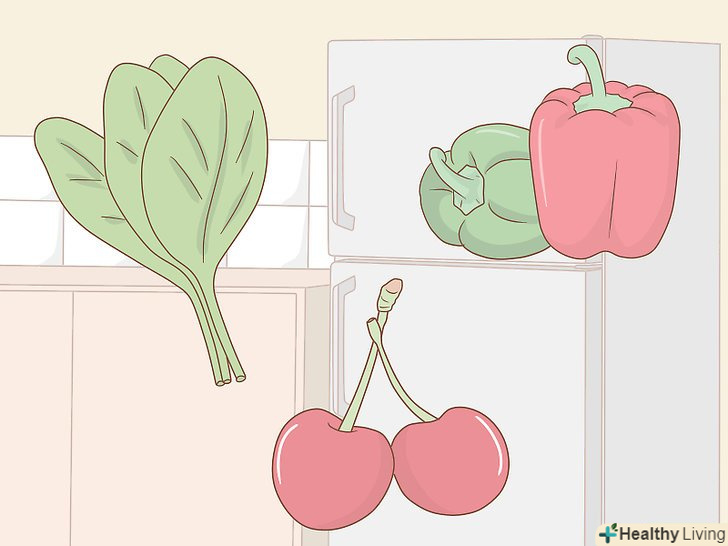 Їжте багато фруктів і овочів.зокрема, Вам варто перейти на їжу, багату вітаміном В і залізом (наприклад, зеленолисті овочі). Більшість фруктів і овочів містять велику кількість антиоксидантів, які допомагають запобігти нападу панкреатиту.[9] приділіть увагу наступним продуктам:[10]- Зелені овочі