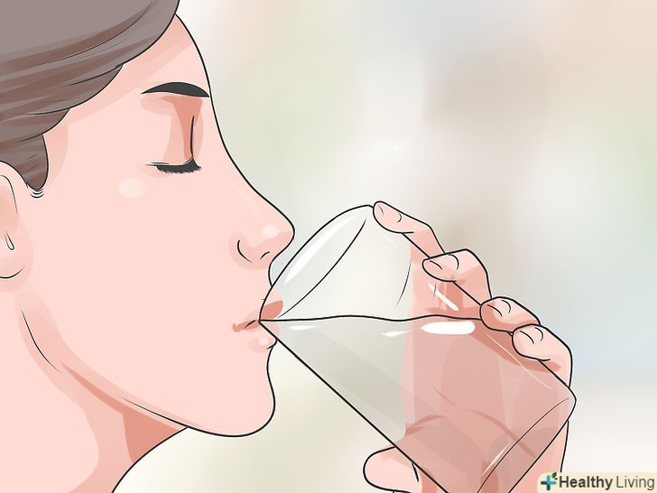Пийте багато рідини. Уникайте зневоднення під час вагітності.- Якщо влітку ви перебуваєте в другому або третьому триместрі, проконсультуйтеся в срачом з приводу вживання напоїв, що містять електроліти, на зразок спортивних напоїв.[41]