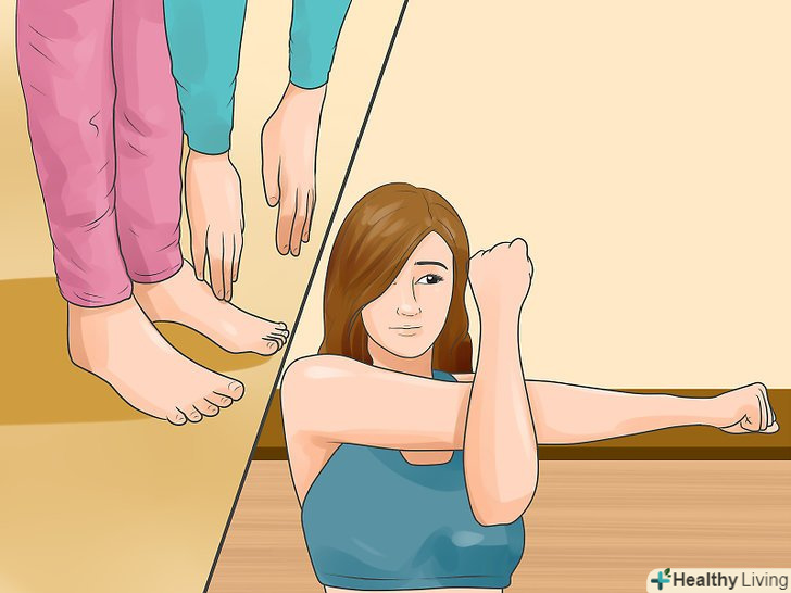 Робіть розтяжку до і після вправ.розтяжка перед тренуванням допомагає м'язам розігрітися, покращує кровотік і загальну гнучкість. [24]- Розтяжка після тренувань знімає втому і біль в м'язах. Правильна розтяжка сприяє розслабленню м'язової тканини, вивільняє небажані речовини, які могли накопичитися під час тренування, а також забезпечує належний кровотік до м'язових тканин.[25]
