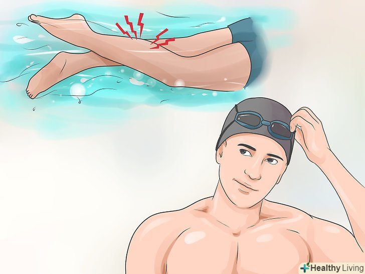 Судома в ногах від плавання.хоча плавання і є відмінним вправою, воно також є поширеною причиною виникнення судом в ногах. Прийміть належні запобіжні заходи, перш ніж почати плавати, особливо якщо ви не займаєтеся цим цілий рік і плаваєте в холодній воді.[26]- Під час плавання холодна вода послаблює кровотік до м'язів ніг. Прийміть запобіжні заходи і не плавайте поодинці на той випадок, якщо у вас виникне судома на такій глибині, що ви не зможете дістати до дна ногами.[27]