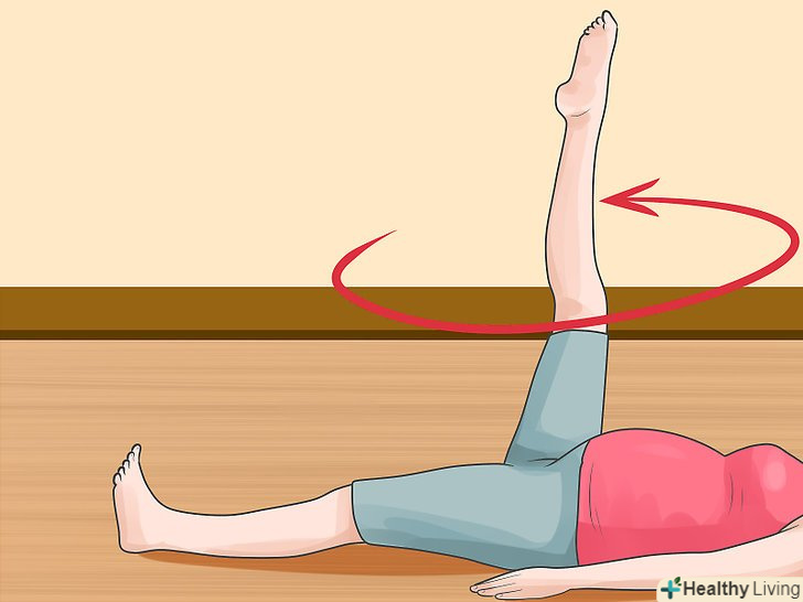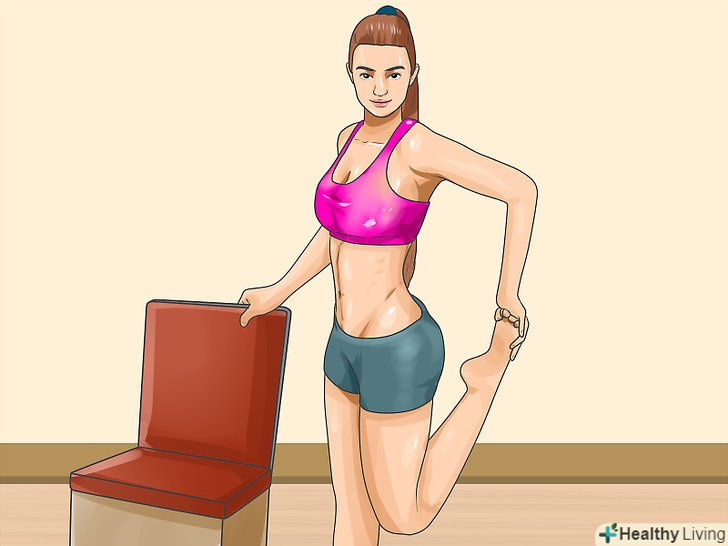 Розтягніть чотириголовий м'яз.підійдіть до стіни або поставте поруч стілець, щоб не впасти. Зігніть ногу в коліні і візьміться за ступню. Потягніть за ступню вгору, у напрямку до сідниць.[36]