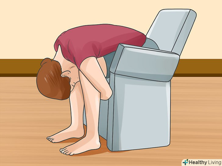 - Якщо ви не можете стояти, сядьте і випряміть зведену ногу. Тягніться носком у напрямку до голови і грудей, нога при цьому повинна залишатися випрямленою.[6]
