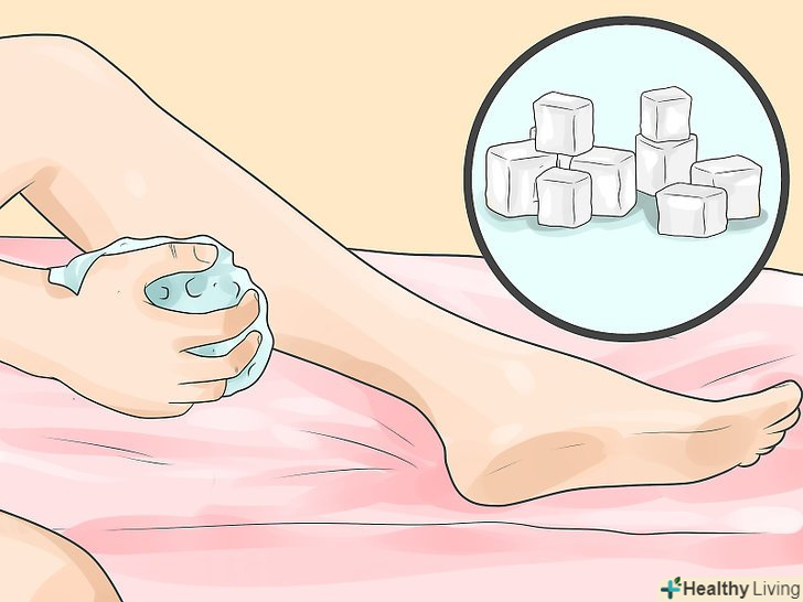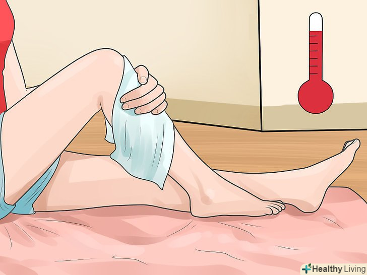 Прикладіть лід.деякі люди розповідають, що їм стає краще, коли до зведеної судомою м'язі прикладають лід. Визначте, що Вам підходить краще.[12]- Не кладіть лід безпосередньо на шкіру. Візьміть невеликий мішечок і покладіть в нього лід, після чого заповніть його водою достатньо, щоб накрити лід. Видавіть повітря, щільно його закрийте, а потім замотайте мішечок вологим рушником і прикладіть до ноги.
