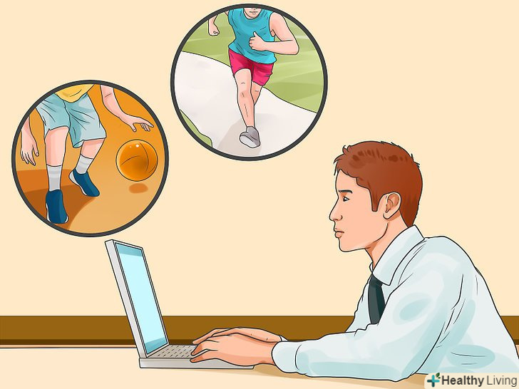 Уникайте сидячого положення протягом більшої частини дня.погано розвинені м'язи є причиною повторюваних судом ніг. [30]- Якщо ваша робота вимагає сидячого положення, тоді робіть перерву хоча б кожну годину і трохи пройдіться. Ви навіть можете просто встати і трохи розім'ятися-все ж краще, ніж постійно сидіти. Пройдіться під час обідньої перерви, якщо у вас є така можливість.[31]