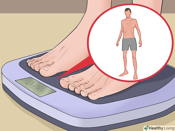 Слідкуйте за своєю вагою.оскільки запобігти втраті ваги легше, ніж знову набрати його в процесі лікування, стежте за своєю вагою. Зважуйтеся щонайменше три рази на тиждень. При побічних ефектах хіміотерапії легко випустити з уваги те, що ви втрачаєте вагу. Лікарі повинні стежити за вашою вагою.[2]- Якщо ви почали лікування з нормальною вагою (нормальним індексом маси тіла), причиною для занепокоєння може служити втрата 1-2% ваги в тиждень, або 5% маси тіла за місяць. Наприклад, для людини вагою 70 кілограмів це означає втрату приблизно 1 кілограма на тиждень або 3-4 кілограмів за місяць.