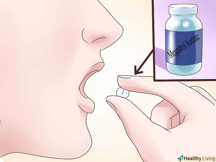 Приймайте ліки.лікар може призначити комплексне лікування "Мегестролом" (мегестрол ацетат), кортикостероїдами і транквілізаторами, щоб зменшити втрату ваги і запобігти атрофію м'язів. Дозування кожного препарату може змінюватися в процесі лікування, в залежності від поточного стану.[10] крім того, вам можуть призначити "Оксандролон" або "Ондансетрон". "Оксандролон" являє собою анаболічний стероїд, він сприяє росту м'язів і його часто використовують для того, щоб набрати вагу після травм.[11] "Ондансетрон" застосовують для лікування анорексії, нудоти і блювоти у хворих на рак, які проходять курс хіміотерапії або променевої терапії.- Іноді знижений апетит і втрата ваги викликані іншими причинами, які піддаються лікуванню, наприклад депресією, болем або почуттям тривоги.[12] лікар порекомендує вам відповідні препарати або курс поведінкової психотерапії, які допоможуть зменшити депресію і почуття тривоги і поліпшити апетит.