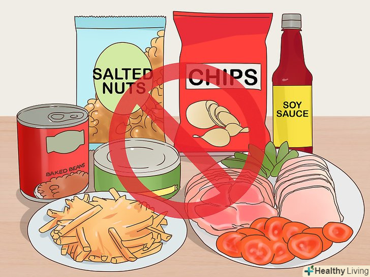 Відмовтеся від продуктів з високим вмістом натрію. натрій сприяє [6]- Солоні горішки,