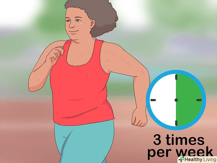 Приділяйте фізичним навантаженням як мінімум 30 хвилин більшість днів тижня. вправи допоможуть вам скинути» Водний " вага, підвищивши рівень потовиділення, таким чином ваш організм буде позбавлятися від води. Крім того, певна частина води організму перейде в м'язи, замість того щоб залишатися поза клітинами. Поєднання кардіо і силових тренувань — кращий спосіб скинути вагу. Спробуйте чергувати ці два види тренувань: один день — кардіо, наступний — силова.[10]- Намагайтеся займатися будь-яким видом помірних або інтенсивних кардіотренувань як мінімум 30 хвилин 3 рази на тиждень. Біг, їзда на велосипеді, веслування або плавання — найпоширеніші види кардіо.