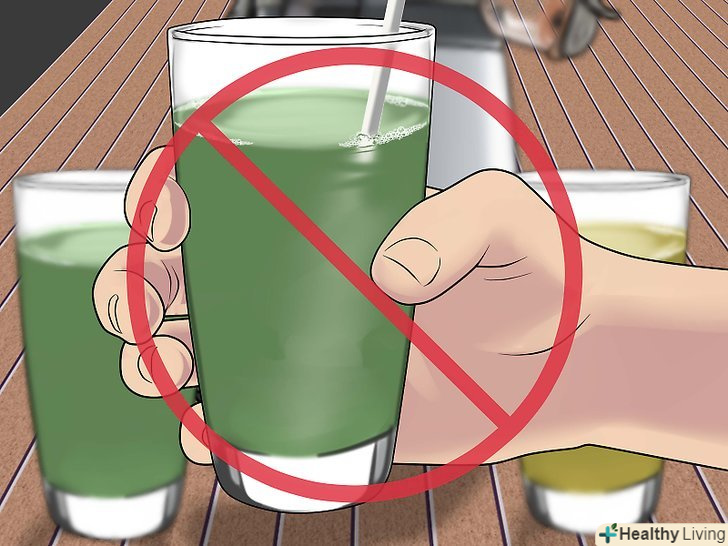 - Перестаньте вживати нездорову їжу (чіпси, піцу, цукерки, гамбургери, буріто, тако та ін.), а також перестаньте пити шкідливі напої (різні газовані і підсолоджені напої, Навіть якщо вони дієтичні, кава, енергетичні напої або інші напої, які не дають вашому організму нічого корисного).