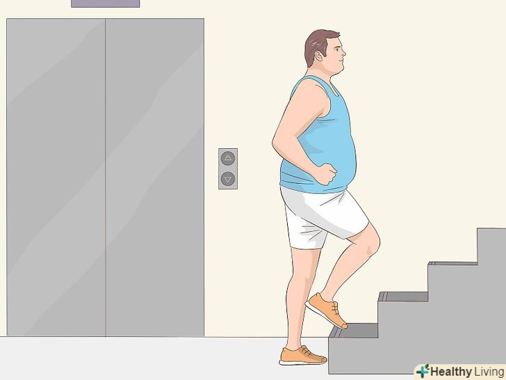 Більше рухайтеся протягом дня.крім регулярних планових тренувань постарайтеся збільшити рівень своєї фізичної активності протягом дня. Це також допоможе вам спалювати більше калорій.[12]- По можливості намагайтеся користуватися сходами, а не ліфтом.