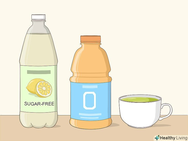 Випийте склянку низькокалорійного напою, якщо хочете насолодитися додатковим смаком.якщо вам важко пити одну воду, можна вживати і інші напої, проте вони повинні містити мало калорій, цукру і вуглеводів. Відмінно підійдуть кава або чай, так як вони складаються в основному з води. Якщо вам не підходять ці варіанти, можна пити не містять цукру лимонади, спортивні напої або ароматизовану газовану воду.[6]