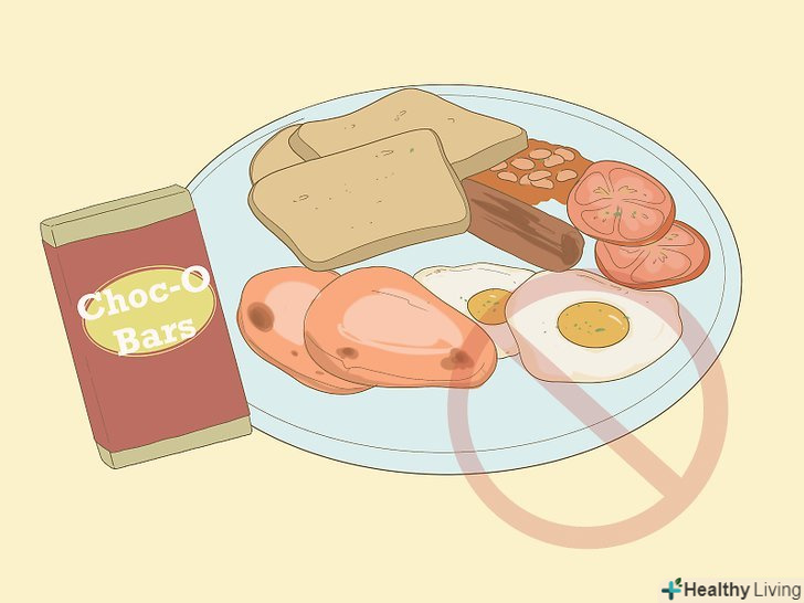 Утримуйтеся від перероблених вуглеводів.щоб легше позбутися від боків, не вживайте вуглеводи, які зазнали глибокої переробки, в тому числі білий хліб, випічку, печиво, тістечка, білий рис і продукти з картоплі. Корисні вуглеводи в помірних кількостях постачають організм енергією, яка необхідна йому для занять спортом, в той час як перероблені вуглеводи можуть підвищувати рівень інсуліну і тим самим збільшувати кількість накопиченого в області живота жиру і заважати скинути його.[27]