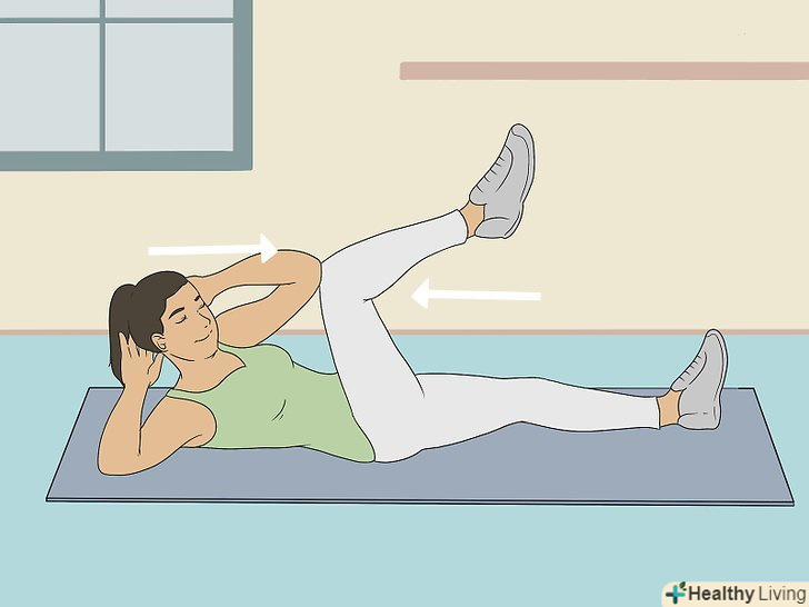 Виконуйте вправи для м'язів кора, щоб зробити живіт більш рельєфним.якщо ви зосередитеся лише на вправах для живота, то не позбудетеся від боків: корисніше займатися цим поряд з кардіо-тренуваннями і вправами для всього тіла.[9] вправи для преса, наприклад скручування з піднятими ногами, можуть доповнити загальні вправи для всього тіла, допомогти позбутися від боків і надати животу підтягнутий вигляд.- Наприклад, різні варіанти пози планки зміцнюють всі м'язи кора і допомагають надати животу підсмажений вигляд. Планки з розведенням ніг в стрибку, бічні планки, підтягування ніг до грудей, вправа «альпініст» — всі ці відмінні кардиоупражнения зміцнюють м'язи живота.[10]