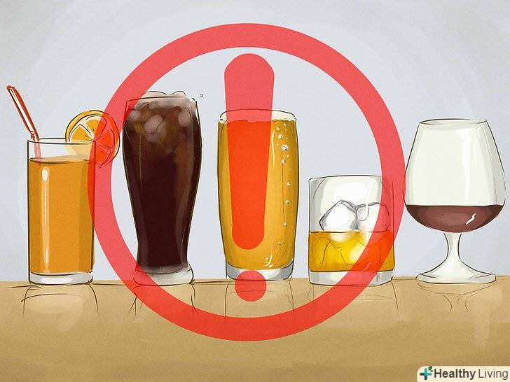 Обмежте вживання калорій з рідиною.часто значна частина зайвих калорій надходить в наш організм з різними напоями. Щоб схуднути, зведіть до мінімуму кількість "рідких" калорій.[12]- Калорії присутні в багатьох напоях. Обмежте вживання таких напоїв або повністю відмовтеся від них, щоб скинути зайву вагу.