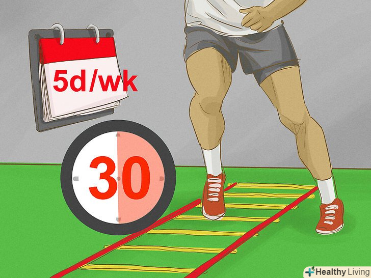 - Якщо ви хочете швидше скинути жир на стегнах, займайтеся по одній годині в день 5-6 днів на тиждень, тобто присвячуйте тренувань близько 300 хвилин в тиждень.[17]