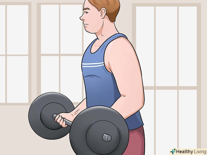 Включіть в свої тренування силові вправи.ці вправи допоможуть вам зберегти хорошу фізичну форму. Найкраще поєднувати аеробні та силові вправи.- Займайтеся силовими вправами хоча б 2 дні в тиждень. Постарайтеся задіяти при цьому всі основні групи м'язів.[19]