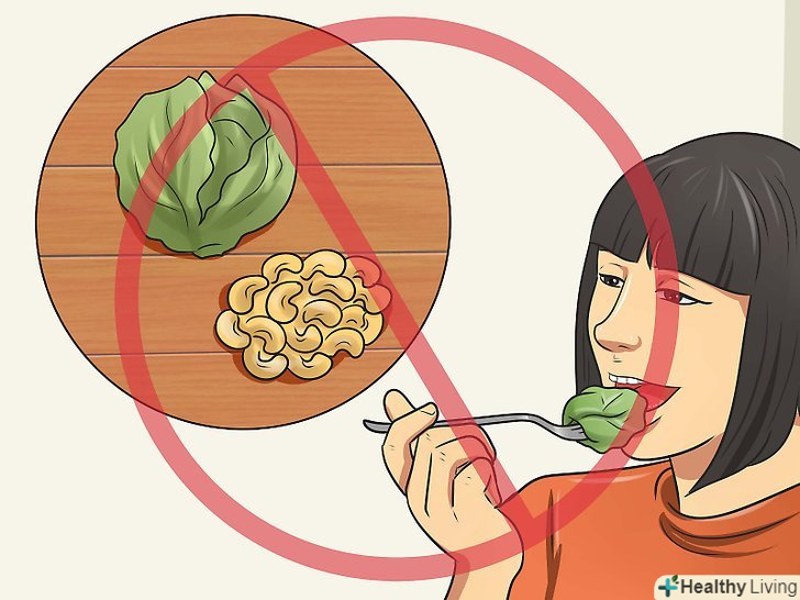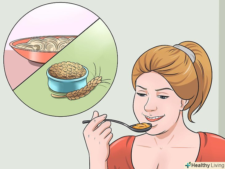 Обмежте споживання зернових продуктів.якщо ви хочете швидко скинути вагу, необхідно значно змінити свій раціон харчування. Повна відмова від зернових продуктів допоможе вам швидко скинути вагу, проте такий крок досить ризикований. Замість цього утримуйтеся від білих і перероблених зернових продуктів і віддавайте перевагу продуктам з цільних зерен.- Згідно з дослідженнями, Низьковуглеводні дієти дозволяють скинути вагу з максимальною швидкістю, однак якщо після закінчення дієти ви почнете знову вживати вуглеводи, то майже напевно наберете вагу, що призведе до небезпечного Йо-йо ефекту.[9] не відмовляйтеся від зернових продуктів повністю, але при цьому стежте, щоб основою частиною вашого раціону були нежирна білкова їжа і некрохмалисті овочі.[10]
