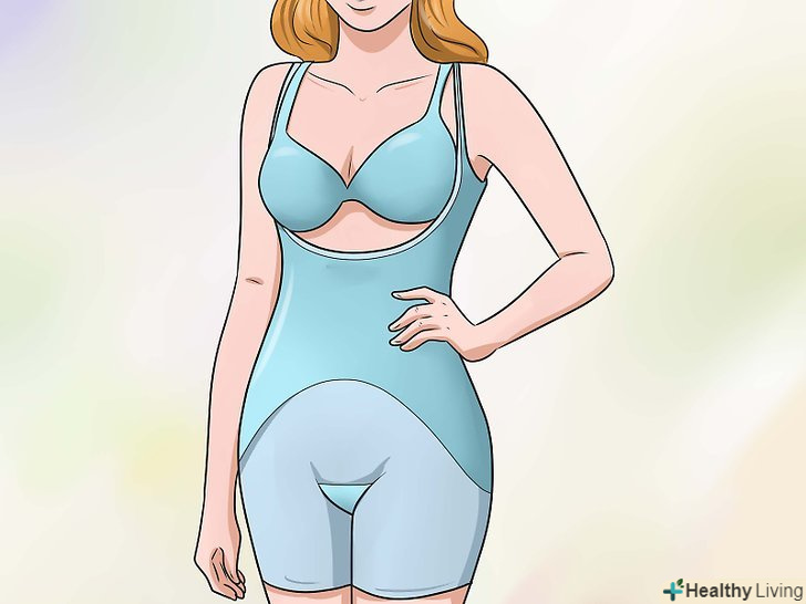 Придбайте корсет.у продажу є безліч різних предметів нижньої білизни і корсетів як для жінок, так і для чоловіків. Корсет або обтягуюча білизна допоможуть вам виглядати стрункіше.- Корсет не тільки додасть вам стрункість, але і дозволить згладити складки тіла. Він допомагає також приховати жирові складки на талії.