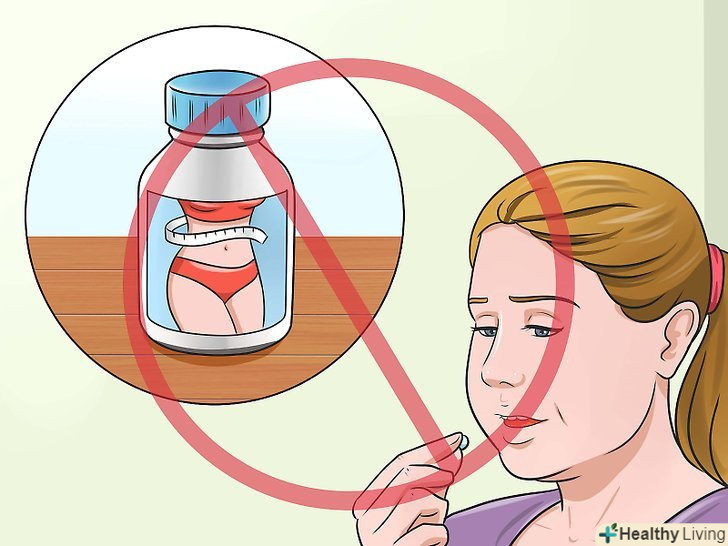 Уникайте химерних і радикальних дієт.є безліч дієт, які обіцяють швидке схуднення за дуже короткий період часу. Як правило, ці дієти небезпечні для здоров'я і можуть не підійти вам.[15]- До найбільш популярним радикальним методам відносяться різні способи очищення організму, сокові дієти, таблетки для схуднення, рослинні екстракти та ін'єкції. Згідно з рекламою, багато з цих методів дозволяють швидко схуднути без особливих зусиль з Вашого боку.