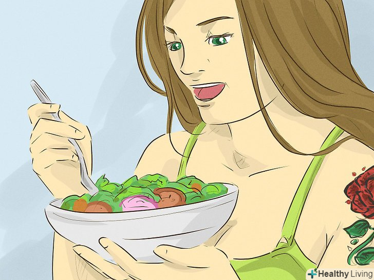 Пийте достатню кількість води щодня, щоб відчувати ситість.[1] співробітники клініки Майо рекомендують дорослим жінкам випивати 9 склянок води в день, а чоловікам — 13 склянок в день.[2] це не тільки буде підтримувати ваше здоров'я і водний баланс в організмі, але і допоможе не плутати спрагу з голодом. Якщо ви будете пити достатньо води, щоб наповнити шлунок, ви зможете обдурити організм: він буде «думати», що повний їжі, в той час як насправді він буде повний води з нульовим кількістю калорій.- Пам'ятайте, що ці цифри є загальними рекомендаціями, і кількість необхідної особисто Вам води буде варіюватися в залежності від вашої ваги і рівня активності.