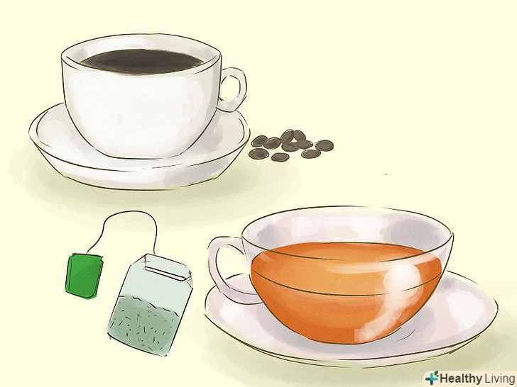 Задійте каву і чай.якщо ви-один з багатьох людей, яким важко до кінця прокинутися вранці, не хвилюйтеся! Експерти включають каву і чай в щоденну норму рідини.[4] якщо ви покладалися на енергетичні напої в минулому, то тепер набагато кращий спосіб підбадьоритися — це звичайні напої з кофеїном.- Не додавайте калорій в ці напої зайвими доповненнями. Карамельний латте або фраппучіно будуть повні цукру і калорій з молока, збитих вершків і ароматизуючих сиропів. З іншого боку, чашка звичайної чорної кави містить всього дві калорії і в ній зовсім немає жирів![5]