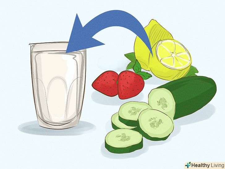 Додайте смак за допомогою фруктів.якщо ви виявите, що вам не вистачає ароматизованих напоїв, які ви раніше пили, щоб зарядитися енергією, можна зробити власні варіанти без цукру і калорій. Наріжте улюблені фрукти і овочі (полуницю, лимони, огірки) і залиште їх відмокати в глечику з водою в холодильнику. Через кілька годин вода придбає фруктовий смак, і ви отримаєте приголомшливий низькокалорійний напій.