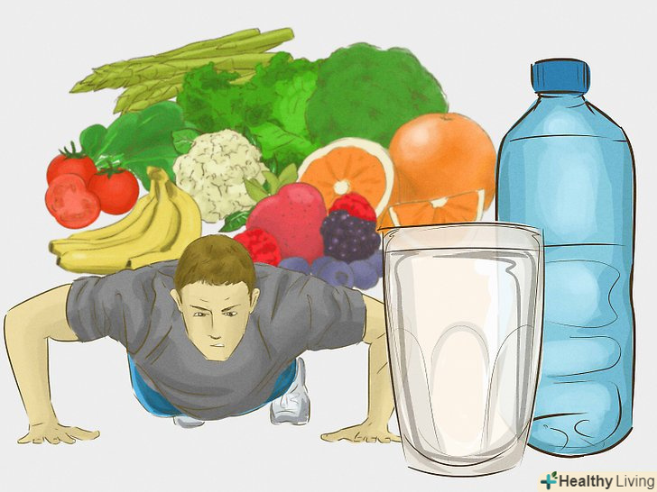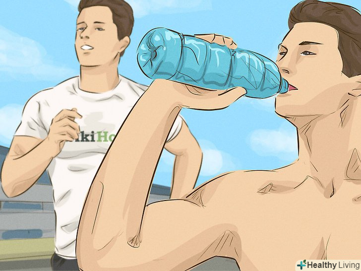 Пийте воду до і під час занять спортом.дослідження показують, що пиття води може прискорити метаболізм, дозволяючи організму спалювати калорії трохи швидше, ніж зазвичай.[8] хоча це і не значне зростання, це все одно важливо і нескладно! Дослідження показують, що якщо ви збільшите щоденне споживання води приблизно до 6 склянок на день, ви зможете втратити додаткові 2 кг протягом року.- Обов'язково пийте достатньо води, щоб заповнювати кількість рідини, яка виходить разом з потом під час занять спортом. Якщо ви не будете цього робити, у вас може наступити зневоднення, здатне викликати безліч загроз для здоров'я.