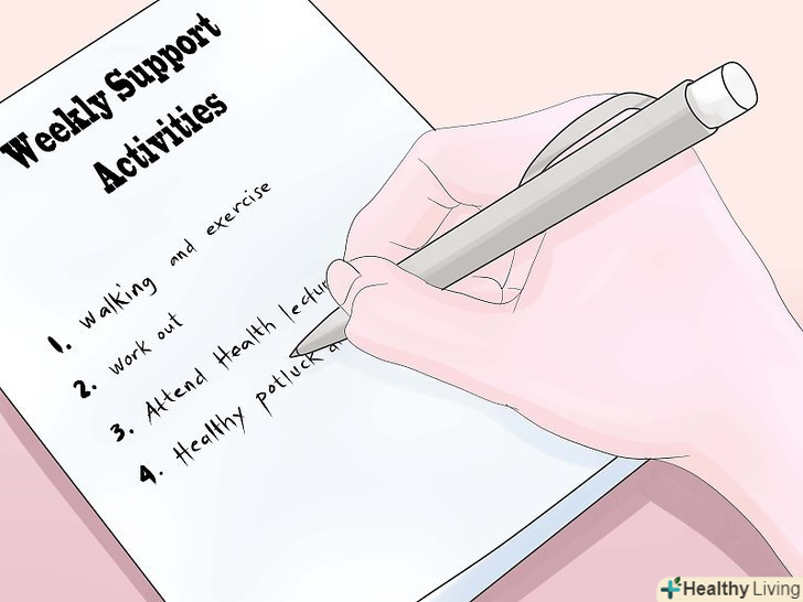 Організуйте щотижневі заняття для підтримки.ви запропонуєте один одному емоційну підтримку, а також поділіться своїми стратегіями втрати ваги.- Для зустрічей з учасниками скористайтеся обідніми годинами або перервами на каву. Обговоріть, що вдалося, а що – ні під час ваших занять по схудненню.