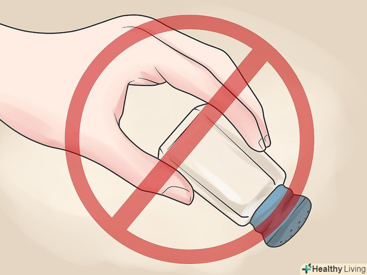 - Уникайте переробленої їжі і не додавайте в страви занадто багато солі. Утримуйтеся від консервованих овочів і соєвих соусів, які часто містять велику кількість солі.[10]